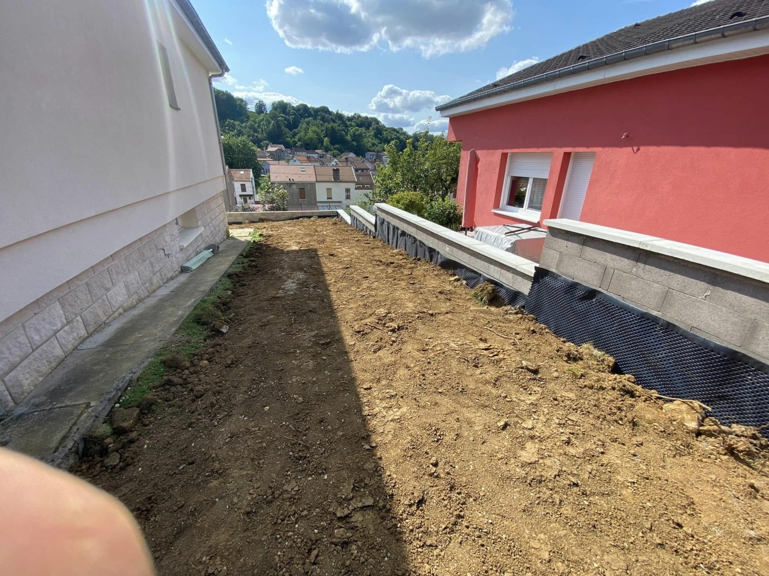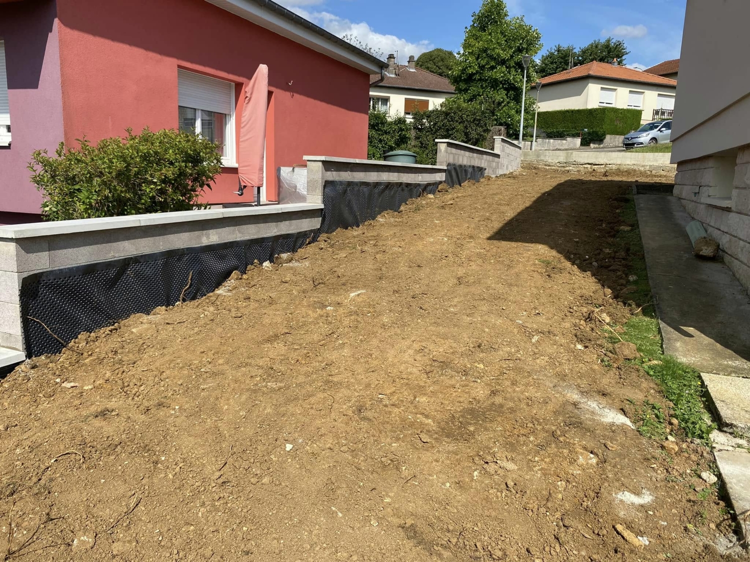 Pose d’un mur de 1m50 de hauteur sur 40 m de long en agglos à bancher non rectifié.