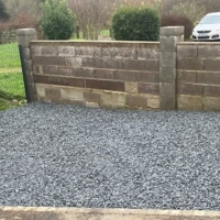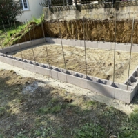Pose d’un mur de 1m50 de hauteur sur 40 m de long en agglos à bancher non rectifié.